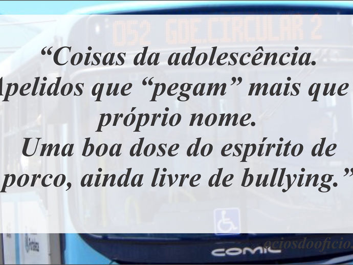 “Coisas da adolescência. Apelidos que “pegam” mais que o próprio nome. E uma boa dose do espírito de porco, ainda livre de bullying.”